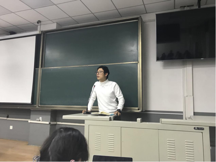 接下来,由两个班级的学习委员为同学们讲解奖学金和学业的相关事宜。首先由二班学习委员李可欣同学具体讲解奖学金情况,包括学业奖学金、特长奖学金和国家奖学金三项奖学金的评选标准、评选原则、评选机构、奖励金额和注意事项等,又全面地回顾了一下上一学年总体的学业情况,并鼓励大家刻苦学习,为下一阶段的进步做好铺垫。随后由一班学习委员况一凡同学为大家就选课的相关情况和专业课程的分组情况做了详细的阐述。