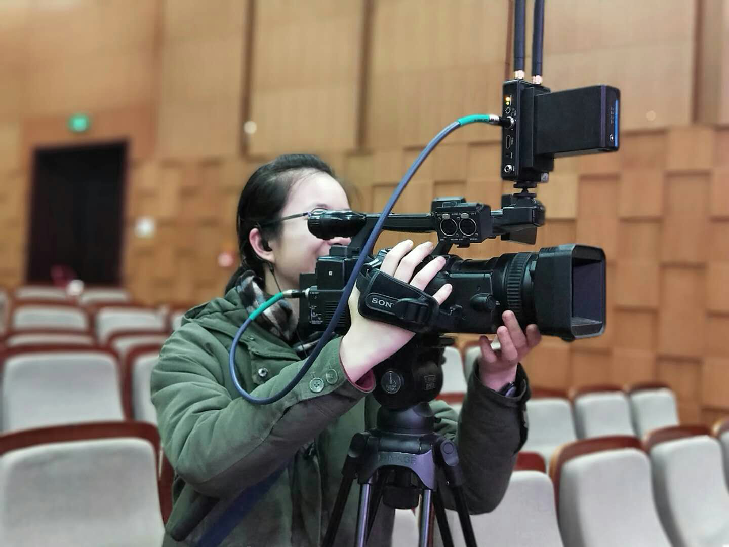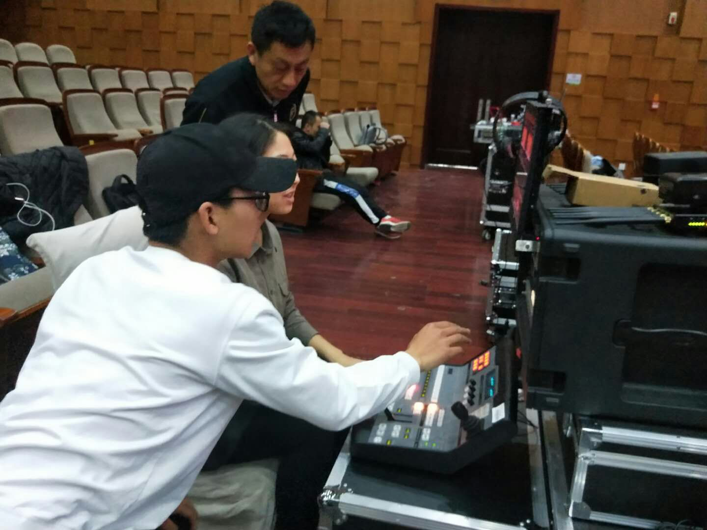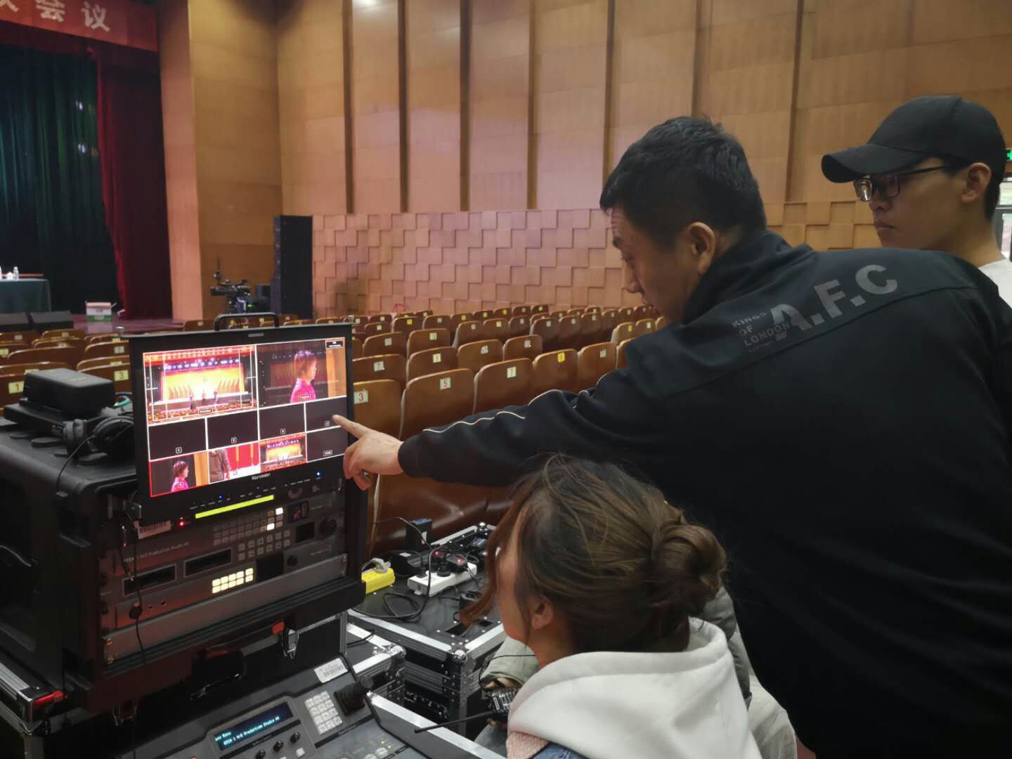 近景、特写机位的同学正在调试画面信号
