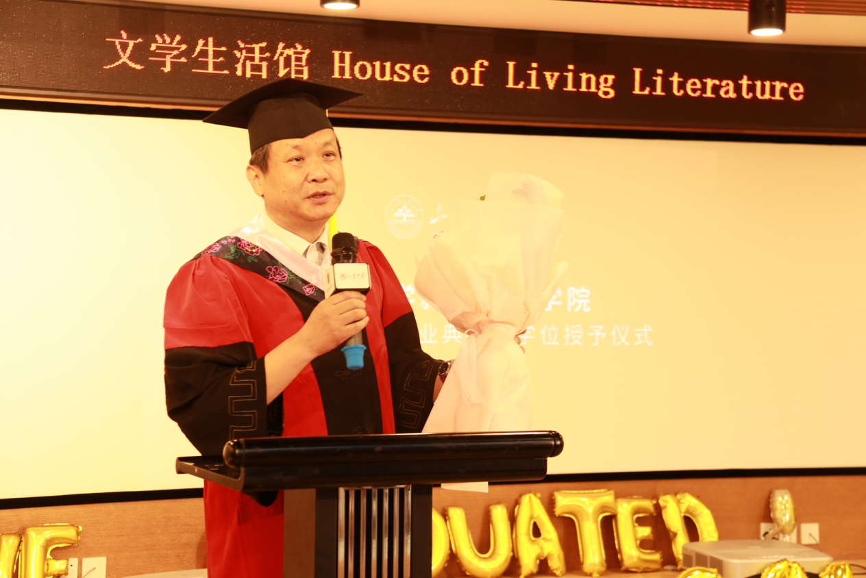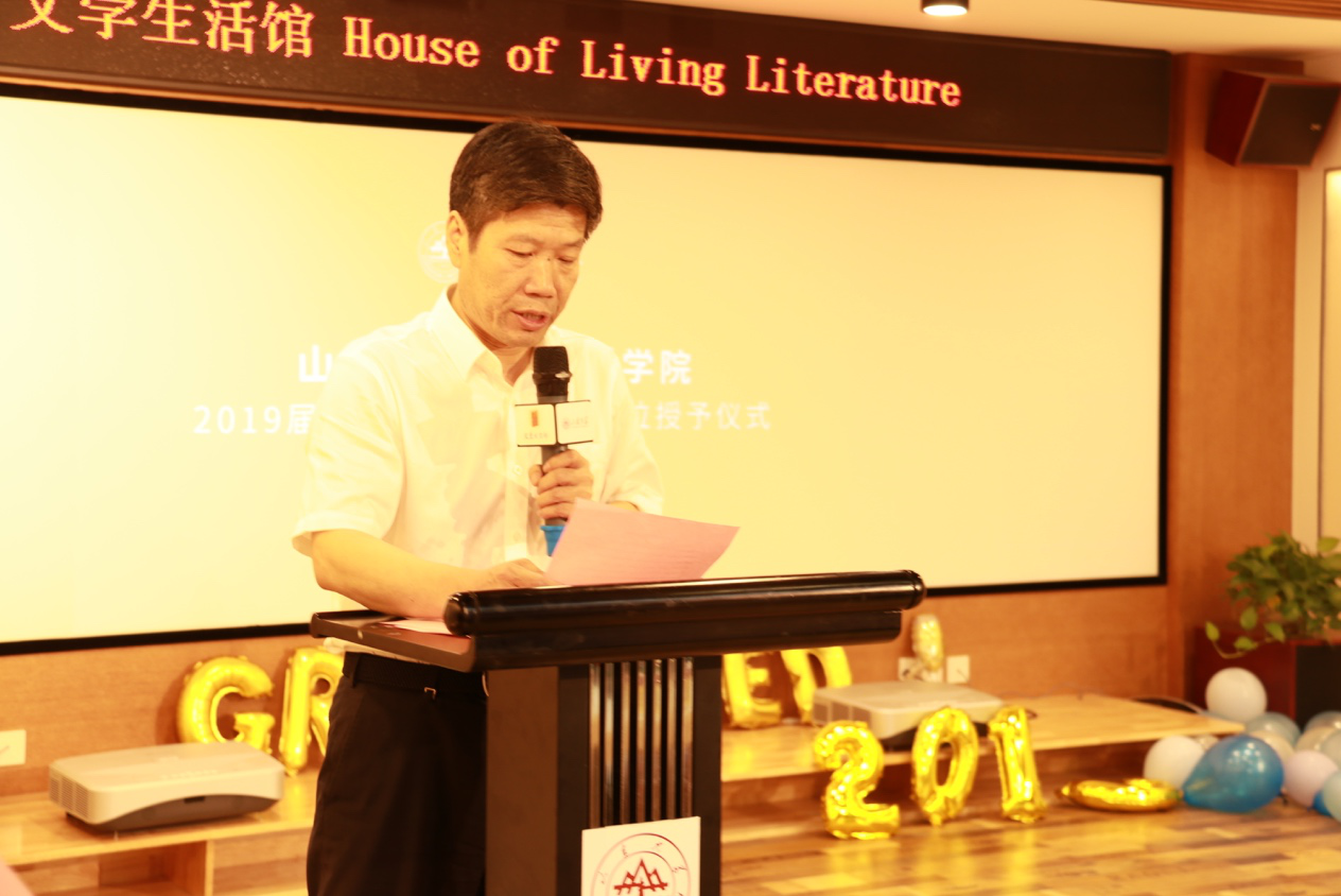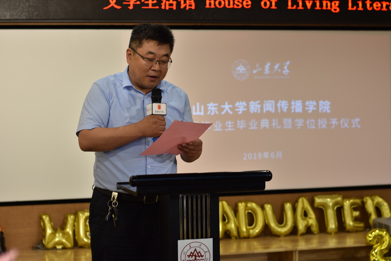 随后,副经理倪万教授宣读《学位授予决定》。倪万教授嘱托每一位毕业生,始终坚守初心,带着责任前行,创造属于自己的历史,创造属于山大的“新传说”。