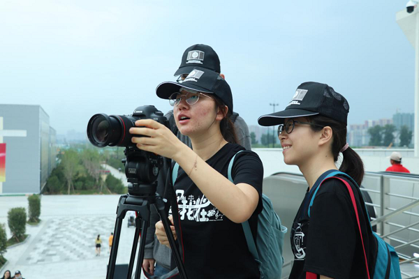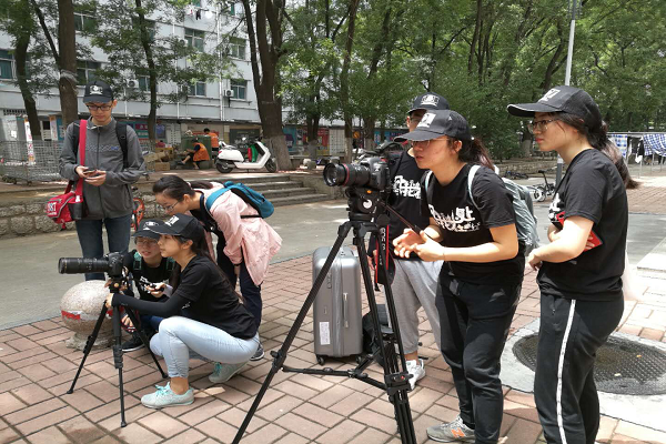 上午,BB贝博艾弗森影视协会的成员们用摄像机记录下“未来山大人”夏令营活动的营员们在学人大厦以及校园内报道的场景。团队成员实际参与活动的前期设计、视频拍摄与后期的剪辑制作活动,并在学人大厦前进行正式开拍的合影。