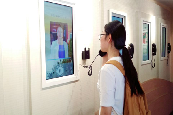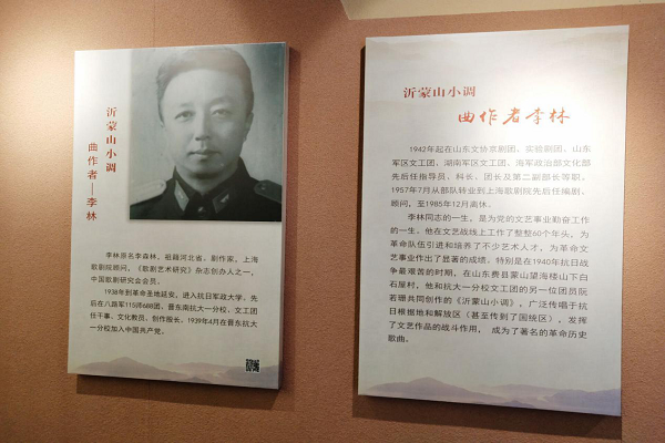 在沂蒙山小调纪念馆中,小组成员认真阅读了沂蒙山小调诞生和发展的历史过程,先后了解了李林、阮若珊等几位创作者的生平,并欣赏了他们的手稿。此外,实践小组还使用展馆内的电话型数字播放器,重温了不同版本的《沂蒙山小调》,之后在电子留言屏上写下了调研感受。