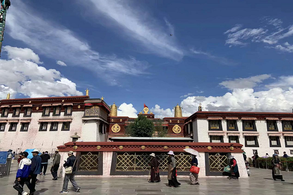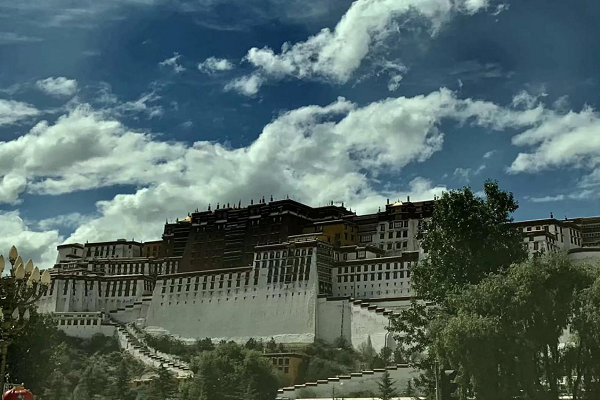 趁着难得的晴天,我们首先来到了西藏最著名的建筑——布达拉宫。坐落在山腰上的宫殿,经历时间的洗礼和历史的沉淀后依旧展现出雄伟壮阔的姿态,经典的含有藏族色彩的建筑配色,经幡、氆氇四处飞扬。头顶的是最澄澈的天,最绵密的云,美不胜收。