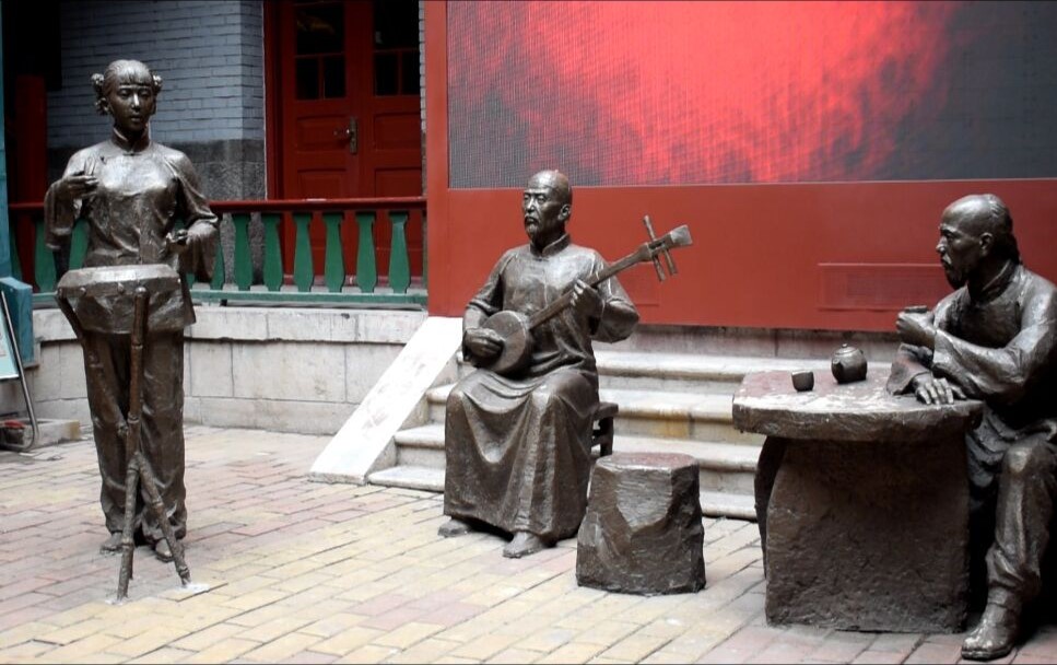 博物馆的讲解员张老师热情地接待了拍摄团队全员。在拍摄之前,张老师带领队员们参观浏览了博物馆并进行了细致地讲解。张老师告诉队员们,历史上济南曾有“曲山艺海”的美誉,曾经和北京、天津并称为中国曲艺的三大码头,这就是曲山艺海博物馆名称的由来。跟随张老师的脚步,队员们依次走进曲山艺海古溯源、南腔北调聚大观、说书唱戏汇泉城、艺海玉振启后人四大展厅,通过阅读文字图片展板、影像资料,观看复原景观、微缩模型、名人雕塑,体验沉浸式互动设备等方式,探寻济南曲艺历史济南曲艺历史的渊源脉络、沿革变迁,领略近现代时期济南的传统曲艺代表人物风采,了解济南当代的曲艺发展状况。