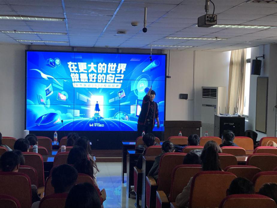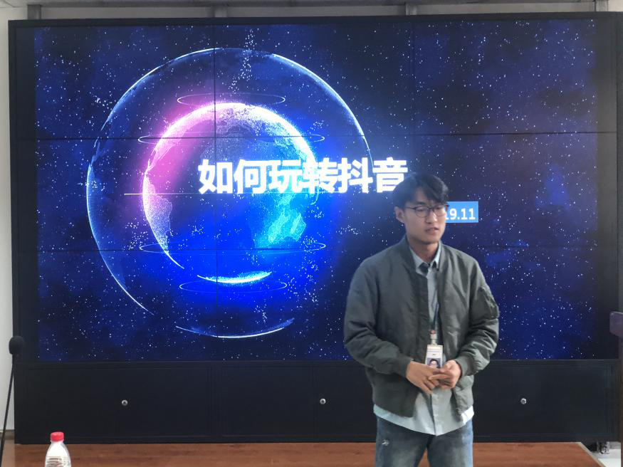 宣讲及答疑过后,来自字节跳动山东分公司营销部的胡锡明以“如何玩转抖音”为主题,与大家进行了关于抖音运营的分享会。他的分享主要来自于他日常工作以及抖音账号运营的经验,借助一些成功的抖音作品案例,向大家展示了抖音爆款内容特点,并且就抖音平台的内容制作思路与账号运营理念做了阐述,给BB贝博艾弗森的参会同学提供了利用所学所长进行内容生产的启发。