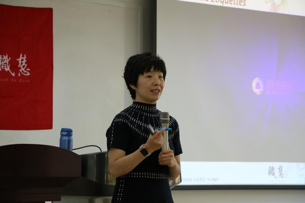 培训会伊始,陈秋颖介绍了自己和职慧的情况。作为一名专业讲师,她通过一个生动形象的例子引入职场礼仪的重要性,引起了大家的兴趣。之后她对本次培训会内容作了简要介绍,培训会主要分为“知”、“情”、“意”、“行”四部分,即认识礼仪、关心他人、展现尊重和养成行为四个方面。