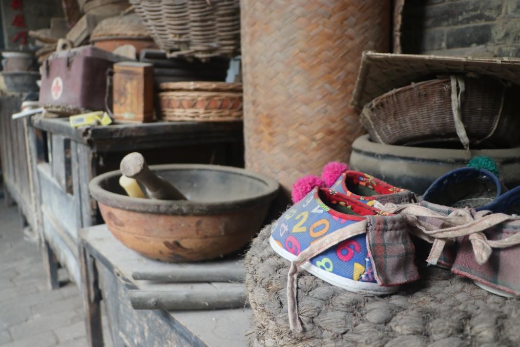 在调研途中,孟家大院中的乡村细节随处可见,各种农具以“随意”地摆放在各个角落,桌上的虎头鞋亲切可爱,专门的农具展馆也让人乡村特色更为浓烈。