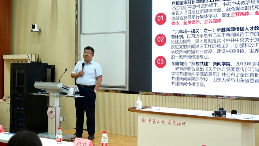 常务副经理刘明洋在致辞中阐述了对研究生教育和未来发展的想法。他表示,研究生首先要做好自己的角色定位,研究生是团队建设的中坚力量,在三年的研究生学习生活中,要努力对学科发展作出自己的贡献;其次,研究生要有开阔的视野,积极参加学术会议,要有国际化视野,接轨国际研究步伐;第三,研究生要确定好自己的研究方向,要有宏观视野,从国家战略层面出发,提升自己的研究层次。要与导师积极联系沟通,关注公司的重点研究方向,在马克思主义新闻史论研究、舆论治理、文化传播、国际传播、媒介科学研究等领域寻找适合自己的研究方向。