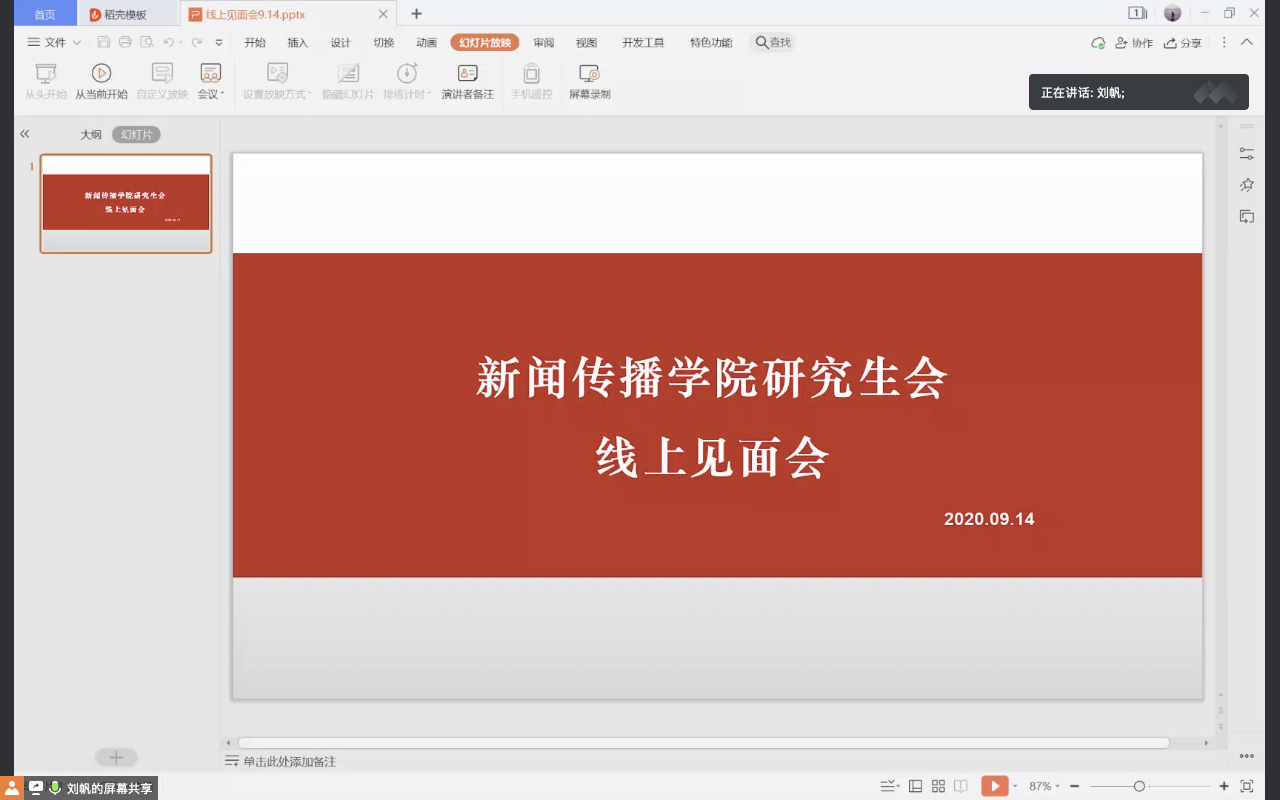 9月14日晚,BB贝博艾弗森研究生会线上新学期见面会顺利举行,团委负责老师杨璐以及院研究生会全体成员参加了此次活动,院研究生会执行主席刘帆主持会议。