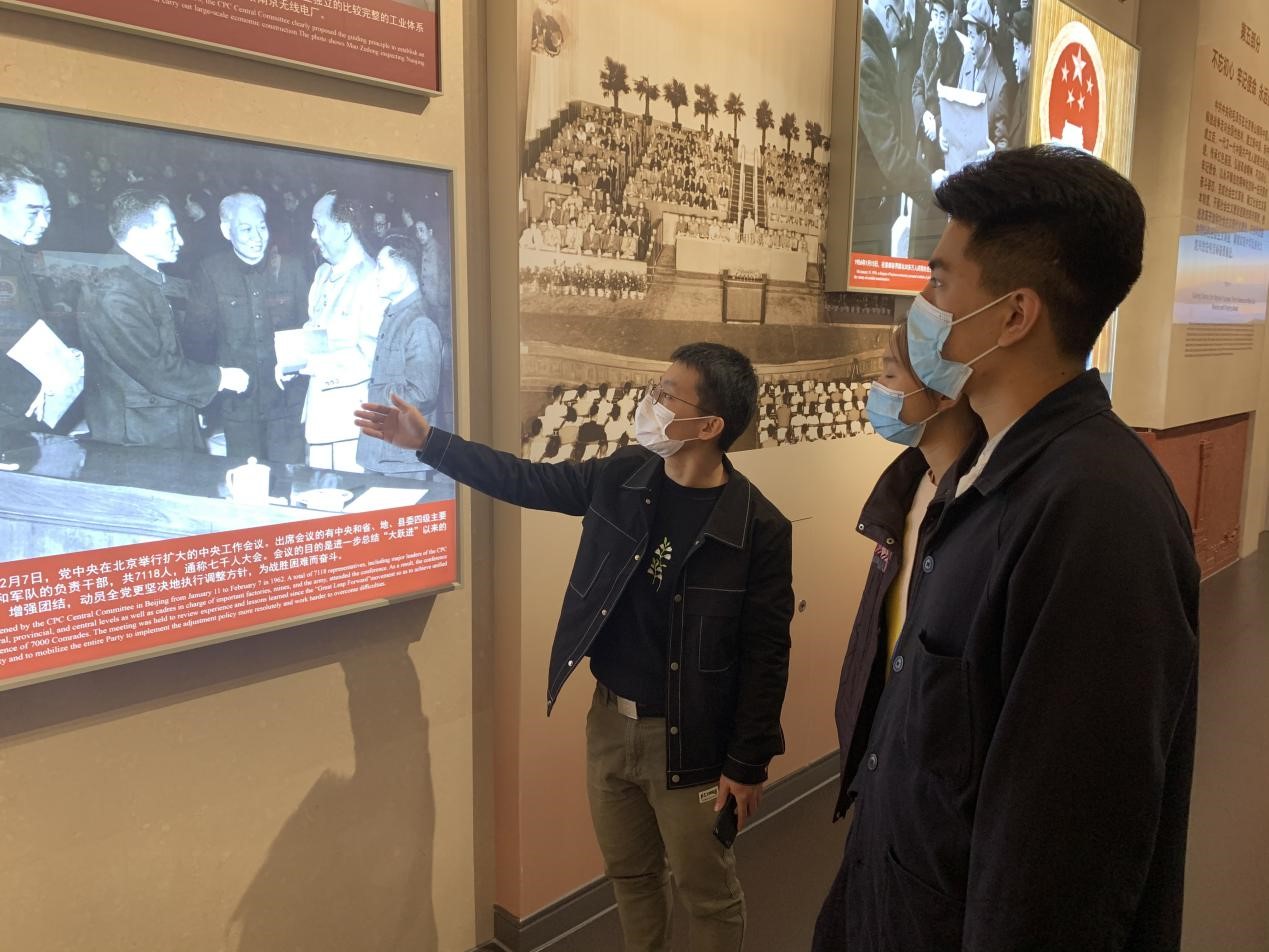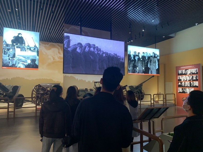 在香山革命纪念馆,师生们参观了“为新中国奠基——中共中央在香山”主题展览,共同回顾了党领导人民夺取全国胜利、筹建中华人民共和国的光辉历史。整个活动围绕“进京‘赶考’”、“进驻香山”、“解放全中国”、“新中国筹建”、“不忘初心、牢记使命、永远奋斗”等五个版块进行调研。现场的一张张照片、地图以及实物、文献和档案,全景式地呈现了中共中央在香山期间领导全国各族人民完成民族独立和人民解放的历史使命,开启中国历史发展新纪元的光辉历程。调研团队重点围绕纪念馆加入的新媒体技术进行了考察,展馆内 “西苑机场阅兵”和“开国大典”的原始影片把同学们带入了那段可歌可泣的历史,“人民欢迎解放军进城”板块作为第一个采用“步入式”的新展示形式,让同学们能亲身体会到欢迎解放军进城的氛围。“开国大典”首次采用全息影像技术,通过LED屏将开国大典中阅兵等全过程原始影像展出。用一系列动态影像视频还原历史,使历史变得可观、可触、可感,也大大提升了同学们参观时的热情与兴趣。在参观过程中,同学们都难以掩盖心中的激动与感慨,纷纷表示作为青年学子应该铭记历史,缅怀先辈,做好新时代的答卷。