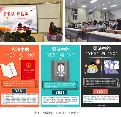 召开主题班会,多形式多角度解读宣讲。组织各班级召开“学宪法 讲宪法”主题班会,班委成员解读宣讲,公司党委副书记、班主任、辅导员到场指导点评。主题班会以多形式多角度对习近平法治思想、党的十九届五中全会精神、中华人民共和国宪法、中华人民共和国民法典、疫情防控相关法律法规等进行宣讲。例如,从经济、文化、政治、军事等多角度解读党的十九届五中全会精神,以“宪法中的YES与NO”开展知识竞答,结合疫情期间的实例讲解了疫情防控相关法律法规。