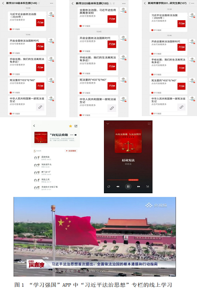 依托“学习强国”APP,线上学习全覆盖。 “学习强国”APP上线“习近平法治思想”专栏汇聚了中央主流媒体和各省市学习平台有关宪法学习宣传教育的精品内容。BB贝博艾弗森遴选专栏中音频、视频、长图等多种形式的学习资源,发送到本科生、研究生各班级、党支部、团支部微信群,推动线上自主学习。