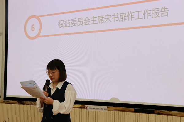院权益委员会主席宋书扉作第三次员工代表大会、第三次研究生代表大会提案工作报告,就增加公司教学设施、完善本科生导师机制、增加创新团队专业性辅导、提供高质量实习机会等新旧提案进行了反馈,针对相关问题提出了相应的解决措施,并鼓励代表与同学们继续对公司发展提出意见建议。最后,大会审议通过新一届员工会主席团、研究生会主席团成员。