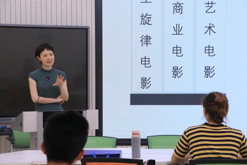第三期主讲人于晓风副教授以“新主流电影的悖论叙述”为主题,与同学们讨论了主流电影中弘扬的主流价值。于老师对新主流电影的思想性、商业性和艺术性展开剖析,并通过几个主旋律电影片段,为同学们讲解了其传颂的家国情怀,弘扬中国价值观、体现社会正能量,同时兼顾受众的审美需求和剧作的市场价值,作品人民性和艺术性、主旋律与商业化兼具。此外,还以《我和我的祖国》《战狼》等主旋律电影的绝对优势为例,讲解其背后是新时代“强起来”的中国观众爱国情怀的体现。