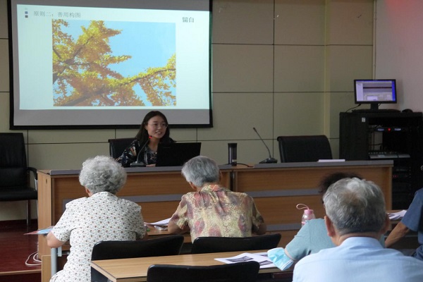 基于此背景,山大“老友青年”团队与两位历城二中的志愿者一起,为老年人开展手机摄影与图片编辑交流会。首先是讲座部分。2019级本科生赵颖颖担任主讲,逐一向老人们介绍了手机摄影的基本构图技巧和图片编辑的基本操作。
