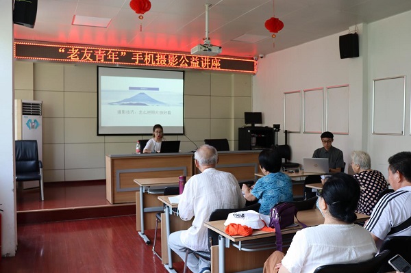 随着智能手机的不断发展,手机的摄影功能逐渐升级,手机摄影成为了手机的热门功能。一项调查显示,有超过六成的老年人有手机摄影功能的需求。如何运用软件进行手机摄影?如何用手机拍出好看的照片?在前期活动的调查中,不少老人都有较强的精进摄影技巧的需求。因此老友青年团队于7月22日上午开展了第一场手机摄影交流会,反响十分热烈。基于此,24日上午,老友青年团队趁热打铁,带着两位历城二中的初中生和一位来自黑龙江中医药大学的志愿者开展了第二场手机摄影交流会,目的是将手机摄影的基本技巧辐射给更多的老年人。