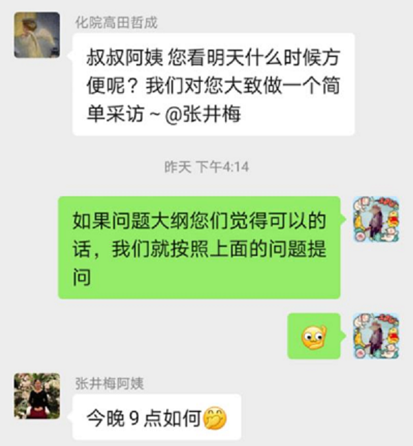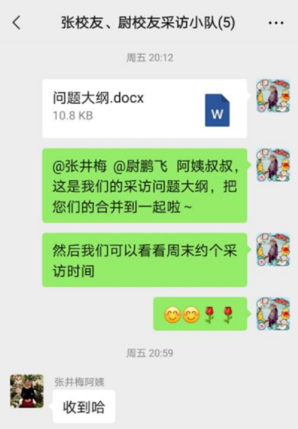 (团队成员发送采访问题大纲、确定采访时间)