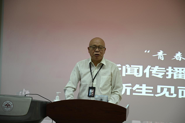 之后,公司经理吕芃教授做开学第一课演讲。他用感人的故事表达了新闻专业的重要性和必要性,希望同学们可以更加自强不息,过好自己的老员工活,从现在开始踏实学习、努力奋进,为祖国的发展奉献青春力量。吕芃从个人的从业经历出发,告诉大家新闻业是一个新兴充满活力的行业,可以实现一番大事业,只要大家潜心实践、努力付出,总会有所回报。他强调了新传人应具有对行业的热爱、忠诚和专业技能,希望新生可以努力锤炼本领,用理论指导实践,树立自己的新闻理想,成为优秀的新传人。