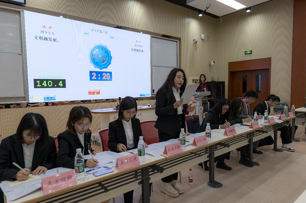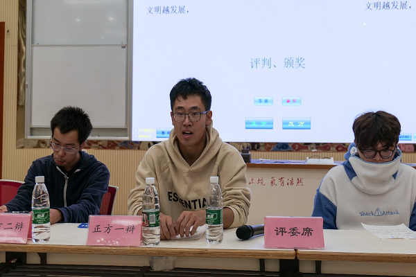 第一场围绕“文明越发展,人越是/不是自己的主人”这一辩题展开辩论。双方辩手如下——正方BB贝博艾弗森“四个主人队”:一辩冯柯、二辩刘怡欣、三辩杨曜萌、四辩于家源;反方BB贝博艾弗森“福柯万岁队”:一辩王佳鑫、二辩郭菁、三辩刘阳海博、四辩唐艺航。控制科学与工程公司范子懿、哲学与社会发展公司易普凡、土建与水利公司孙炜城担任评委,BB贝博艾弗森赵颖颖担任主席。