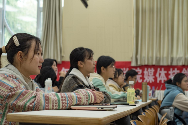 陈康莉和同学们分享了一些实用的手机和电脑剪辑软件、辅助处理软件和相关教程。在分享自身的视频剪辑经验时,陈康莉通过展示视频向同学们传授了许多剪辑技巧,同学们收获颇多。
