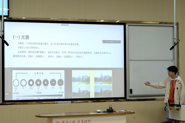 擅长拍摄的徐少磊从多个方面,向大家传授了摄影知识,分享了自身经验,让许多对相机、摄影毫无了解的同学,有了基本的知识储备。课堂的最后,徐少磊分享了罗伯特卡帕的一句名言,启人思考——“如果你的照片拍的不够好,那是因为你靠的不够近。”