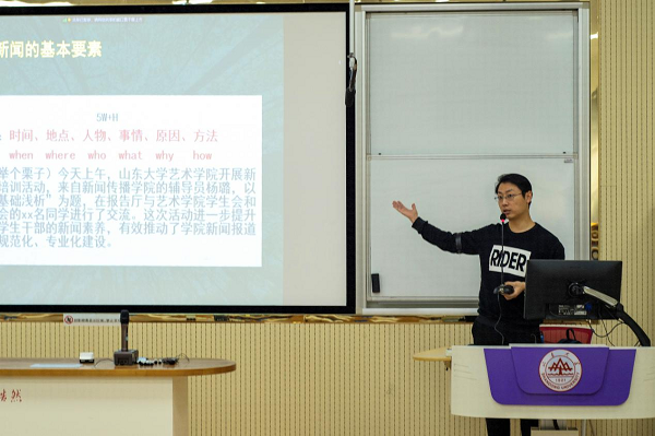 曾经在部队担任记者、拥有丰富的一线工作经验的杨璐老师,从“新闻是什么”、“怎样写新闻”、“怎样创作新闻”三个方面,幽默风趣地向大家传授了许多新闻创作的技巧和经验。杨璐老师所说的创作新闻的两个阶段——“主题先行代替盲目采访”和“学会发现价值”,让人感触颇深。