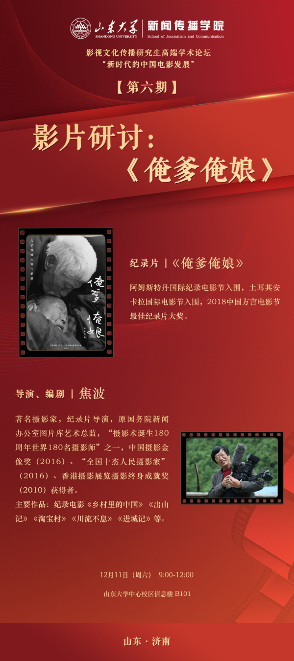 讲座预告 | 影视文化传播研究生高端学术论坛“新时代的中国电影发展”第六期:影片研讨《俺爹俺娘》