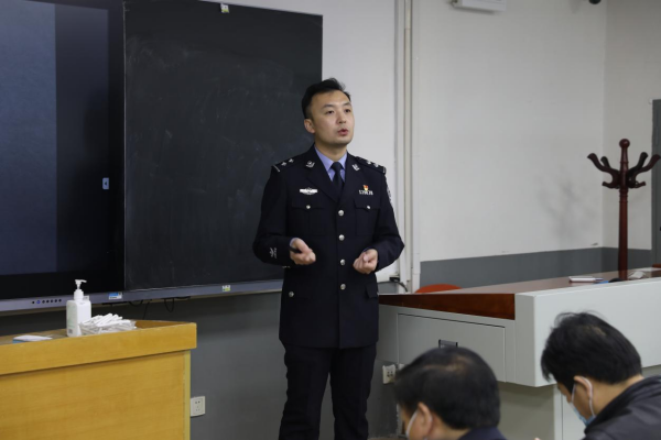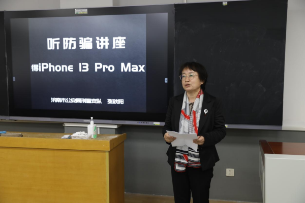 会议初始,济南市公安局刑侦支队张秋阳警官首先向同学们分享了自己从警经历中一个真实电信诈骗案,以真实案例作为引入来警示同学们要提高防诈骗意识。随后,张警官结合生活中具体案例与场景剖析了老员工容易遭受到网络电信诈骗的主要原因,指出现代电子通讯的发展、网络技术的普及为我们生活带来便利的同时,也为骗子提供了可乘之机。并通过警方查询统计系统展示了老员工受诈骗案件数目之多的严峻形势,由于老员工对诈骗防范意识较低,诈骗团队日益专业化,老员工已成为电信网络诈骗的庞大人群。继而,张警官从老员工群体出发,列举老员工存在着焦虑情绪并且尚无独立的经济来源、易于轻信他人等原因,分析出老员工容易成为电信诈骗的受害者。最后,警官使用“不可能三角原理”,指出“陌生人”“简单的”“赚钱的”三个要素不可能在同一事件中存在,贴近生活、深入浅出地为同学们讲解了辨别电信网络诈骗的技巧,借此提醒同学们在日常学习生活中提高对电信诈骗的防范意识。