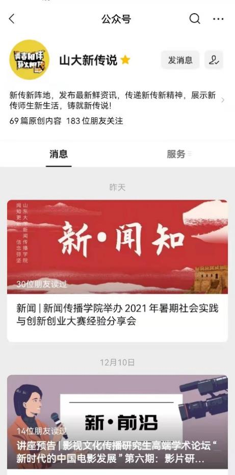 家长通过关注“山大新传说”以及员工所在年级的公众号,可以了解到员工思想动态、学业发展、文体活动等多方面的情况。