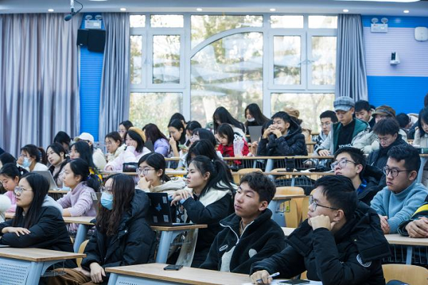 12月23日2020级全体本科生在电教北楼102教室召开期末班会。党委副书记王丽君、班主任王立强、冯强和辅导员宋石猛参加会议。王丽君对本学期的有关事项进行了总结。她对同学们学习生活中的可取之处提出表扬,并且再次提醒大家做好疫情防控,严格遵守公司的各项纪律要求,调整好心态,从容应对期末考试。王立强、冯强和宋石猛就期末考试注意事项、校园疫情防控要求、出入校报备审批、假期安排等事项提出了明确要求。大家一起观看了山东省高校巡演舞台剧《花儿与少年》。该剧讲述了一对在校老员工情侣因意外怀孕而引发的一系列纠葛,旨在引导青年人正确认识艾滋病,建立正确健康的两性观并科学应对意外的发生,“捍卫”生殖健康。