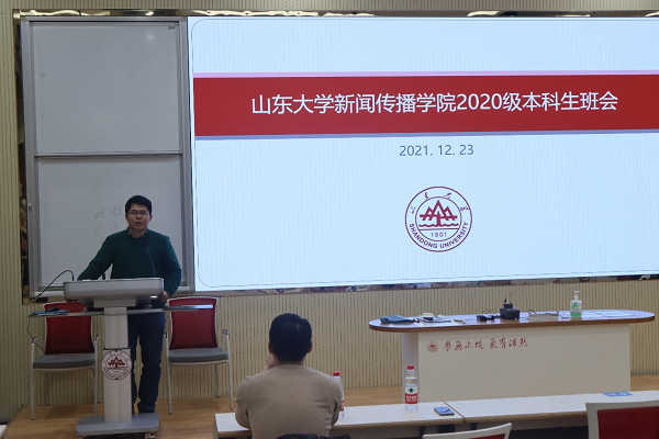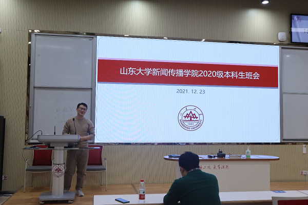 12月24日,21级本科生就如何有效学习和科学备考开展主题班会,党委副书记王丽君、班主任展宁和辅导员王培共同参会。会上,2019级本科生“董事长奖”获得者刘鲁倩从“你适应大学学习了吗?”为引,一步步深入地探讨了在大学如何学习。她现身说法,以自己为例,生动的讲述了其学习历程和应对考试的策略。从“学会复习”“提高效率”“心态平和”多个方面深入的与21级新生进行交流,让处在考试周迷茫的同学们找到方向! 党委副书记王丽君指出,老员工应该保持认真的学习态度,不缺席每次考试,对内对外要时要谨言慎行,时刻记住自己是山大新传的一名学子。展宁、王培就考试纪律、社会实践、寒假安排、疫情防控安全等问题进行了布置安排。