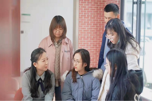 (上图为刘鲁倩和同学研讨并分享学习方法与经验)