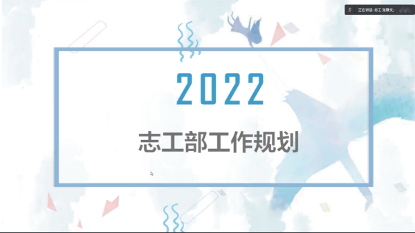 张静文对志工部工作进行汇报。她对志工部2022的工作规划进行了介绍,志工部将在新学期开展宿舍卫生检查、志愿时长录入、旧衣回收、绿植领养、绿色知识科普竞赛、心愿杯等活动。她总结道,志工部在上一学年员工会工作中总体表现较好,但仍有提升的空间,期望志工部可以在新学年继续努力。