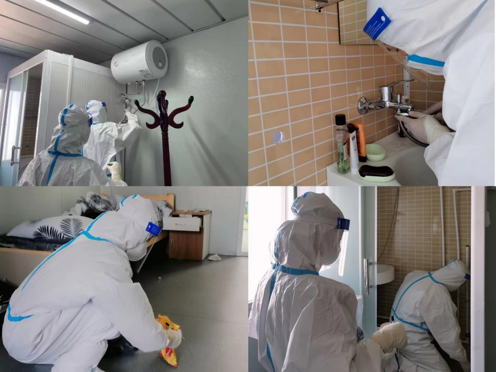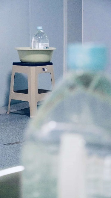 在方舱,一位位工作管理人员身着防护服,为公司师生提供基本的生活保障。化身修理工,他们修补窗纱、改换水管,他们爬楼登顶、搭建网络,尽力提供舒适稳定的环境;化身送货员,他们送饭、送水、送奶、送药、送水果,满足员工们的各种细小需求。一次又一次,师生们目睹并感受着工作管理人员的温暖,心怀感恩,亲切地称之为“大白”,将他们看作“最可爱的人”。有他们默默陪伴,有他们共克时艰,被隔离的师生才会更加安稳地保持生活的节奏,更加坚定地盼望胜利的曙光。