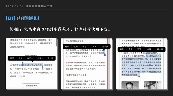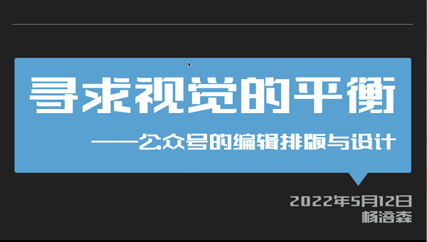 第二部分由原院员工会文艺部部长、原山小招工作室总监杨涪森带来公众号的编辑排版与设计相关内容的讲解,其主题为“寻求视觉的平衡”。在简要说明编辑排版的基础工作后,杨涪森同学通过一对一的举例和修正,列举了编辑过程中的常见问题,内容完备具体、针对性强。而后他选取了山小招和山大新传说公众号的案例,以及几篇较为优秀、值得学习的公众号推文介绍了不同的排版风格,使同学们对公众号的编辑排版建立起基础的审美认知。