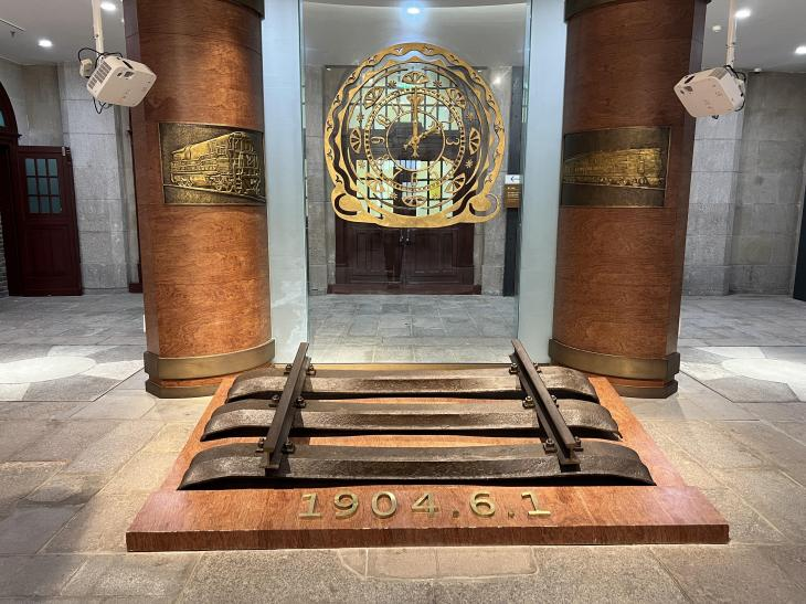 本次队员们参观的胶济铁路博物馆是一座反映胶济铁路诞生发展的专题性展馆,是全国目前唯一一座建于百年以上老车站内的铁路展,其主馆为1915年建成的胶济铁路济南站旧址。展馆共分为四个展区——胶济铁路的修建背景及过程,对山东社会经济发展的影响,风雨沧桑路,迈向新时代。此外,在院外和西辅楼的大件展区还陈列有上游号蒸汽机车、100多年前称火车重量的地磅、1938年的压套机、蒸汽机车的十字头和车钩、轻型轨道车、蒸汽机车最前端的排障器、行车调度控制台、磁石电话交换机、电影放映机等以供参观。