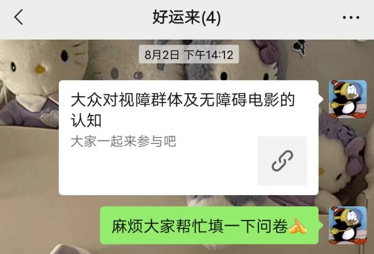 在进行问卷调研的过程中,团队成员刘晨曦、王瑶、莫青青通过线上资料查阅,梳理了无障碍电影的发展历史、现状与瓶颈,并撰写了相关调研报告,为本项目后续开展奠定基础、借鉴经验。成员们了解到2009年的《高考1977》是中国大陆首部无障碍电影,首映便在盲人群体中产生了轰动效应,也标志着我国无障碍电影事业正式起步。虽然与欧美发达国家相比,中国无障碍电影起步较晚,但近几年在互联网技术的发展下,我国无障碍观影有了较快发展,未来还将依托于互联网技术,将无障碍电影以及其他无障碍设施更加深入地融入残障人士的日常生活中。