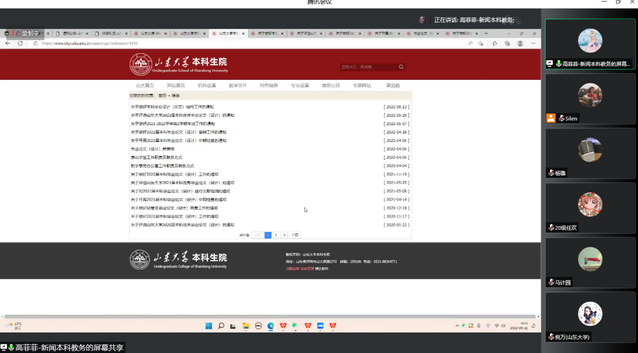 接下来,本科教务高菲菲老师围绕本科生的实习与毕业论文开展进行讲解。在实习方面,她重点强调了把控时间的重要性,要结合公司实习要求与自身实际,按时按点、保质保量地完成实习任务,以免耽误后续毕业的相关事宜。在毕业论文开展方面,高菲菲参照以往的通知要求,提醒同学们密切注意毕业论文的写作、提交、查重的具体要求,尤其是相关环节的截止时间。她强调,对于2019级的毕业生同学来说,时间并不是特别充裕,要合理利用时间,尽可能提前完成好论文写作,以保证后期不慌乱,有充足时间进行调整。