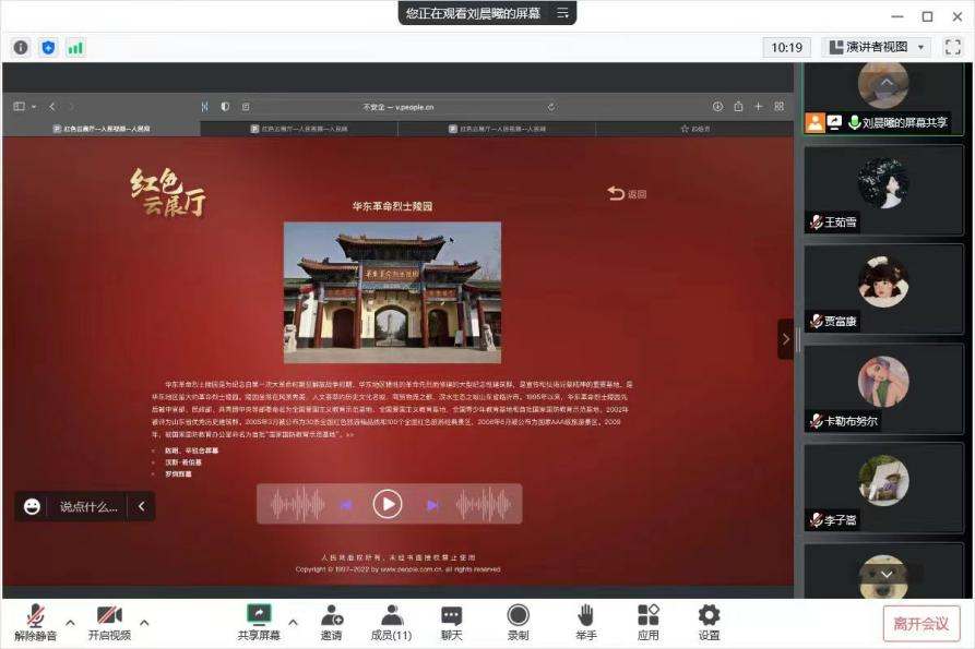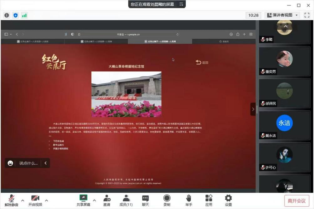 为深入学习贯彻习近平总书记在庆祝中国共产党成立100周年大会上的重要讲话和党的十九届六中全会精神,进一步推动党史学习教育向纵深发展,弘扬伟大建党精神,深入推进党史学习教育,培养担当民族复兴大任的时代新人,8月31日,BB贝博艾弗森红色研学实践队开展了“红色云展厅”主题学习活动。
