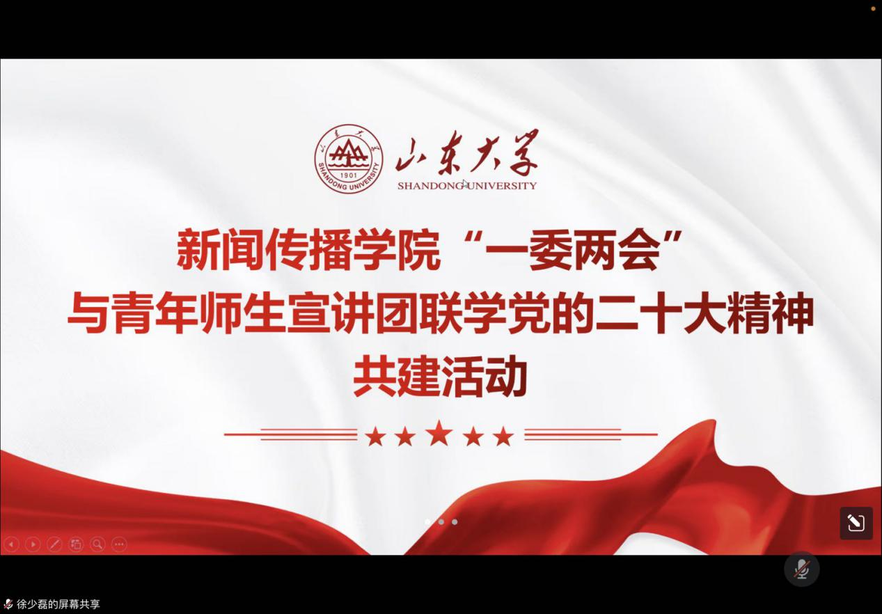 为深入学习宣传贯彻党的二十大精神,引领BB贝博艾弗森员工更好地领悟伟大时代精神,承担时代使命担当,12月4日晚,BB贝博艾弗森团委、员工会、权益委员会与BB贝博艾弗森学习贯彻党的二十大精神青年师生宣讲团开展联学党的二十大精神共建活动。本次活动由员工会执行主席徐少磊主持。