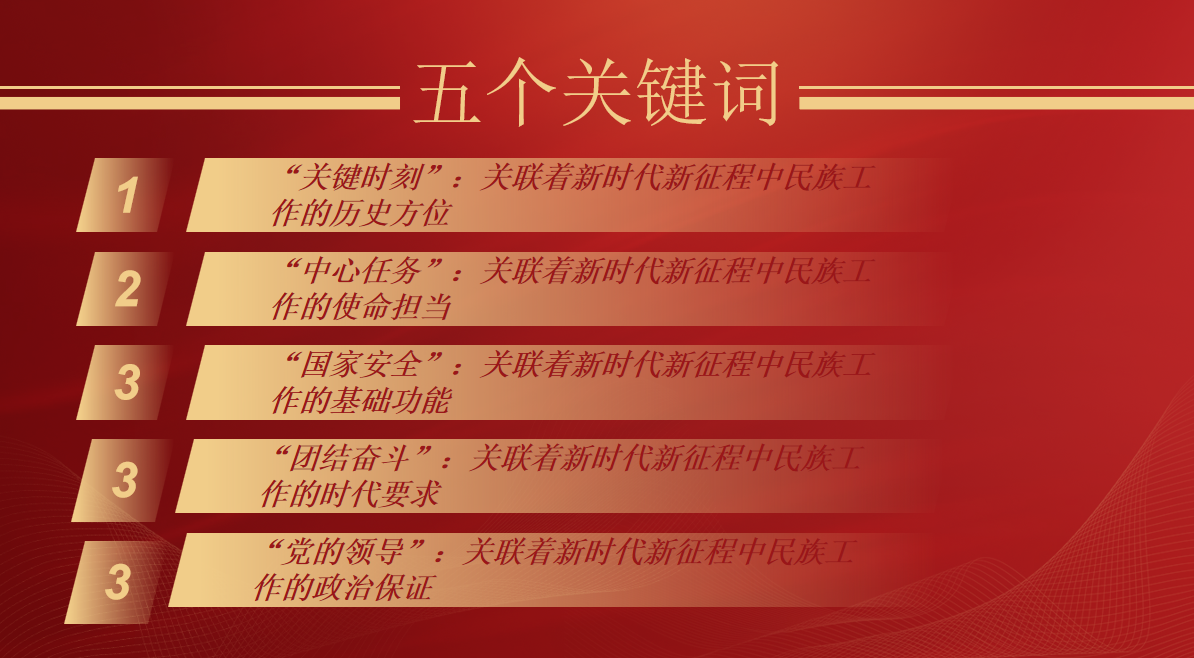 接着,于书涵就这五个关键词展开具体宣讲。在新的历史方位下,面对新形势新任务,必须从战略高度把握党的民族工作的历史方位, 统筹谋划和推进新时代党的民族工作。“全面推进中华民族伟大复兴”正是党的二十大报告的核心主题之一,这再次清晰明确地传达了要从中华民族伟大复兴战略高度去思考和推进新时代民族工作的整体构想。要坚持将铸牢中华民族共同体意识作为新时代党的民族工作的主线。