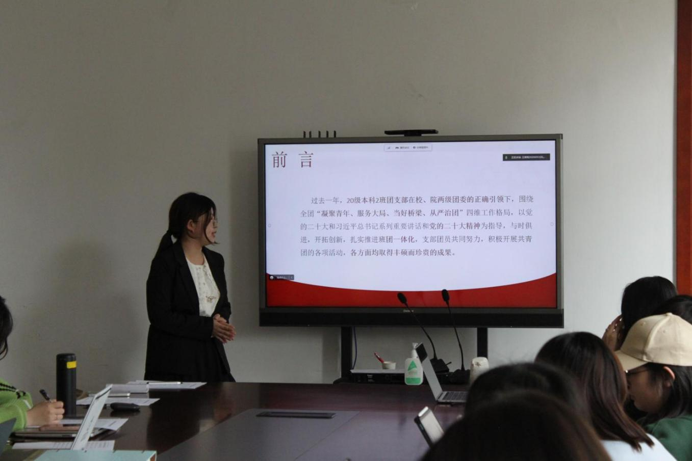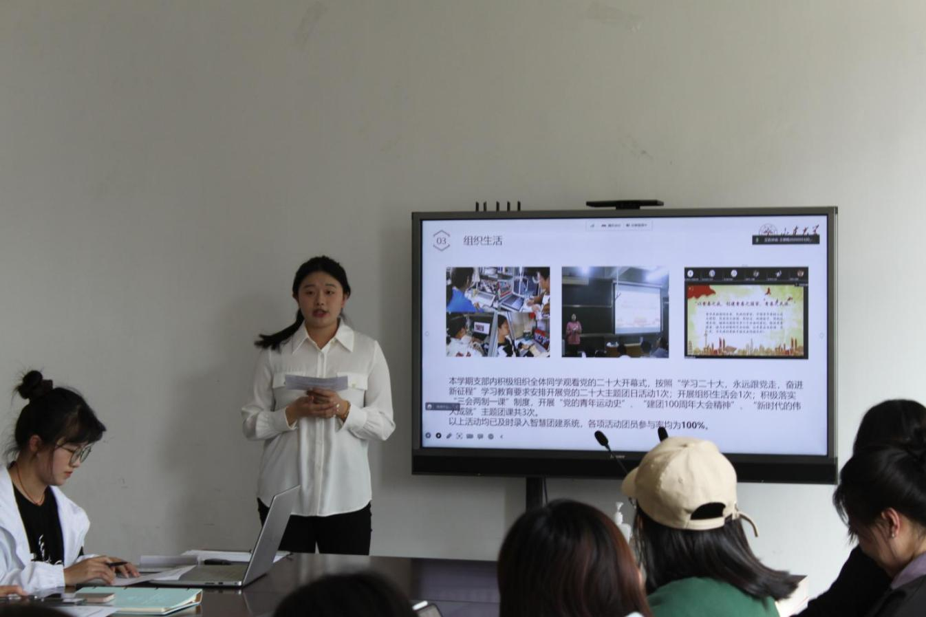 在本次会议中,本、研各级团支书按抽签顺序先后就支部年度工作情况作出报告并进行答辩,打分评定主要围绕班子建设、团员建设、组织运行、活动开展、作用发挥五个方面展开。各支部聚焦组织构成、推优入党情况、青年大学习完成率、支部活动、团员风采、不足与未来展望等方面进行介绍,图文并茂、讲解生动,充分展现了过去一年中团支部的实践成果与精神面貌。尤其是2022年后半年,许多活动无法线下开展,各支部依然能顶住压力迎难而上,积极创造条件推进各项工作顺利开展,取得了可贵的出色成绩。