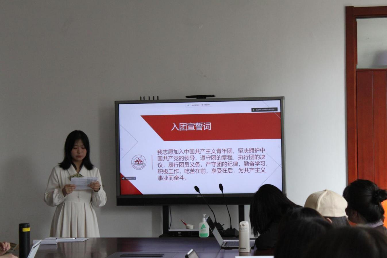 答辩会结束后,公司团委为2022年下半年发展的新团员2020级本科生吴卓林举行了入团仪式,吴卓林在线上进行入团宣誓。