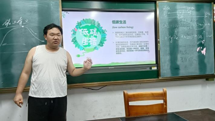 2023年7月24日,BB贝博艾弗森“双碳新语”社会实践调研团走进山东省沂南里庄中学,开展“双碳”及环保知识宣讲活动。“双碳新语”调研团成员、2022级本科生尹天佑主讲。