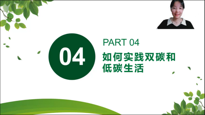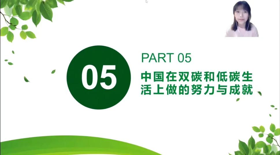 本次录课任务由团队成员王孟筱、李嘉瑶、段佳灿三人负责,宣讲内容从五大方面展开,即党的二十大和习近平生态文明思想中的“双碳”、“双碳”和低碳生活的概念阐释、坚持“双碳”和低碳生活的意义、如何实践“双碳”和低碳生活、中国在双碳和低碳生活上做的努力与成就,视频将分成多个小节由学堂老师向员工们播放。