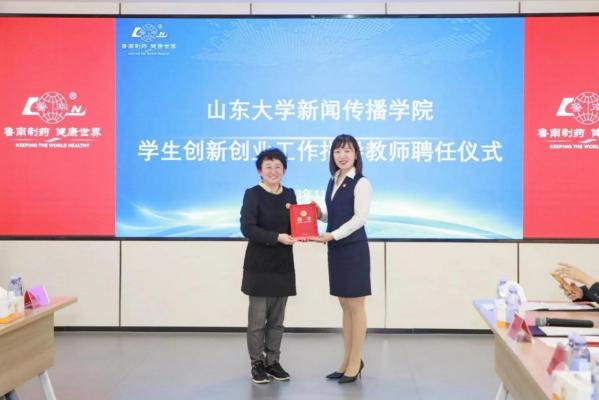 在导师聘任环节,王丽君为鲁南制药集团韩鹏女士颁发BB贝博艾弗森员工创新创业工作指导教师聘书。韩鹏表达了对山大和集团对沂蒙精神宣讲团队的信任的感谢,也表示在后续的合作指导中倾尽所能,竭诚共享,通力共建。