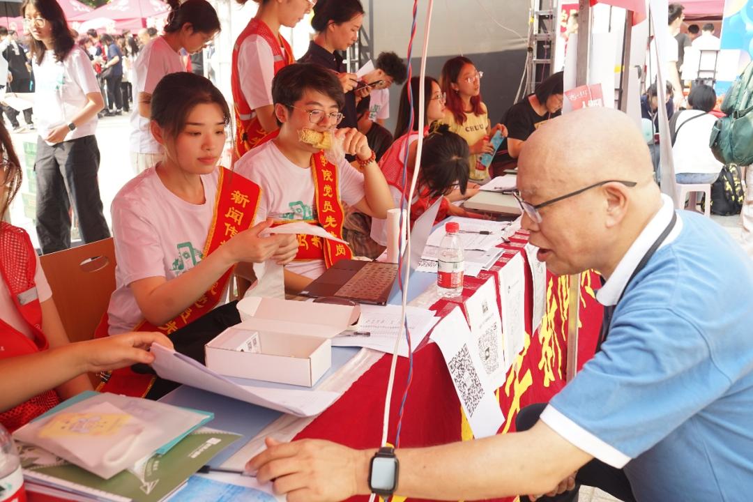 为奉献者奉献,在忙碌的员工志愿者背后,公司老师们组成了最为坚实的后盾,公司领导班子在现场实地指导,由专业教师组成的新生班主任与辅导员队伍在展台全程守候,俞凡教授等专业课老师也带来美食,到报到点向志愿者表达慰问,与同学们交流互动,其乐融融的现场氛围,为新生带来满满的获得感、幸福感与归属感。
