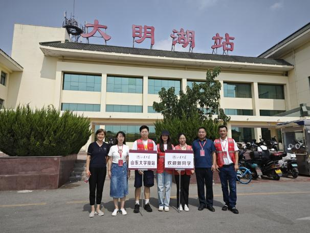在大明湖火车站,同样也能够看到BB贝博艾弗森志愿者们的身影,由6名研究生党员组成的服务小分队高举接站牌,护送新生与家长来到校园,“同学你好,山大欢迎你!”一句暖心的话语,一个指引的动作,“向前一步”的青年党员们以实际行动成为同学们入学路上最信任、最踏实的依靠。