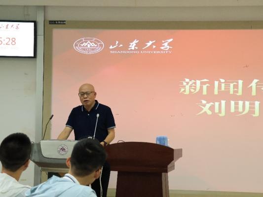 最后,刘明洋经理做出总结致辞并讲授开学第一课。他阐述了自己对新闻的理解,围绕“变革的新闻与我们的变革”这一主题,引出了“大新闻观”,讲述了变革的原因及变革所带来的变化,详细阐述了传统新闻与现代新闻的差异,解释了大新闻的概念与趋势,提出“变革的时代需要新闻的力量”这一观点。他指出,当今时代下,每个人都应当具备新闻素养,用判断定位方向,“做好自己的变革”。他说,新闻具有情怀,希望新生能够投身多元实践,提升自身能力,也祝愿新生快乐地生活、学习、实践,努力让新闻迸发魅力,在新闻的天地里大展宏图。