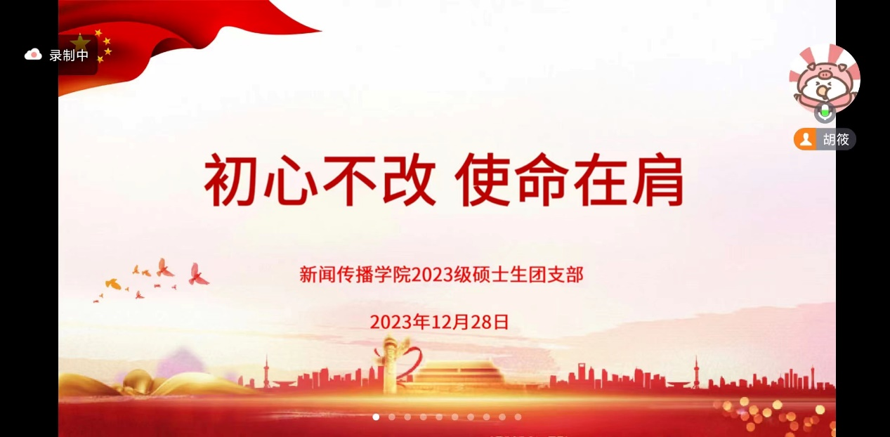 2023年12月,2023级硕士生团支部分别开展了“学习习近平文化思想,担当青年文化使命”“初心不改,使命在肩”两次主题教育。两次主题教育由2023级硕士生团支部团支书胡筱主持,2023级硕士生团支部团员青年参加活动。