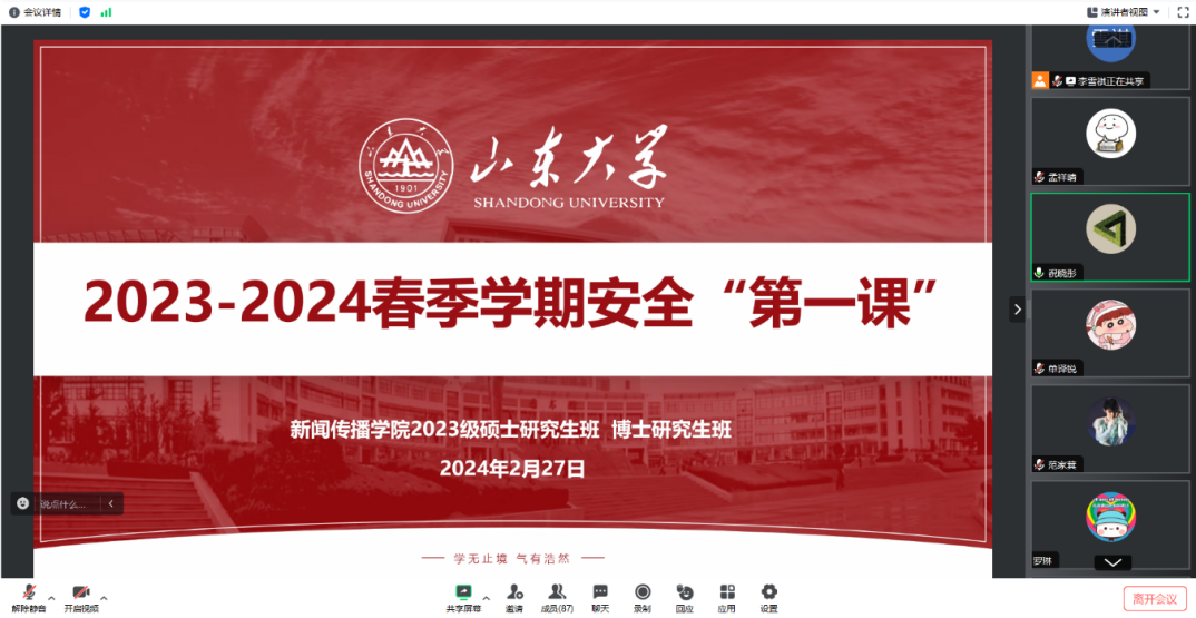 2月28日下午,2024届研究生毕业班开展开学安全“第一课”,公司党委书记孙宜山、党委副书记王丽君、辅导员杨璐参加会议,为员工进行安全教育和指导,传达了各级党委政府对当前公司安全工作的重要安排部署。他们指出,公司安全工作事关广大师生的生命财产安全,事关社会的和谐稳定,必须高度重视,切实加强。
